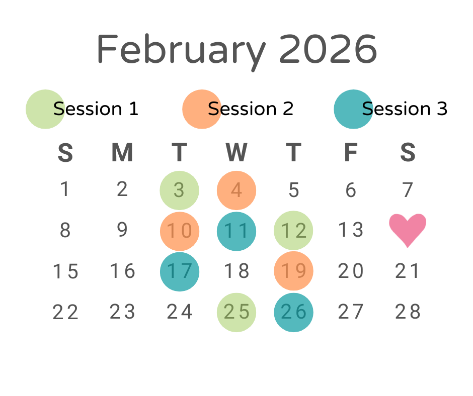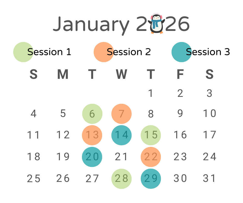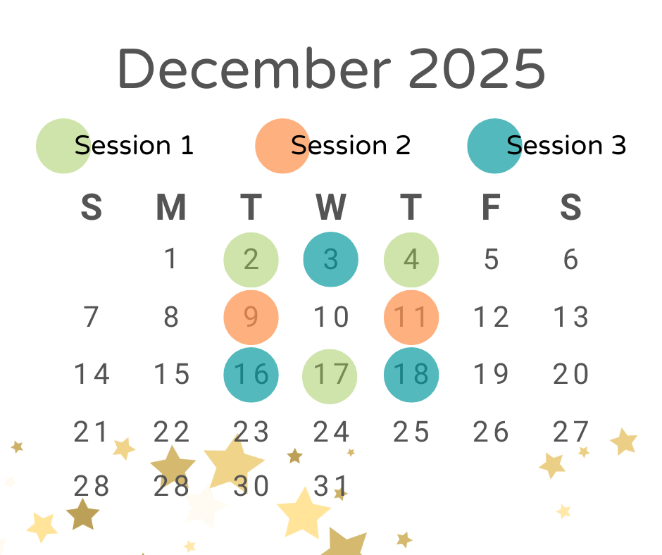 Session times will generally be as follows (dates and times may vary from what is listed below; final session information will be available when you sign up from your NITO Homepage):
